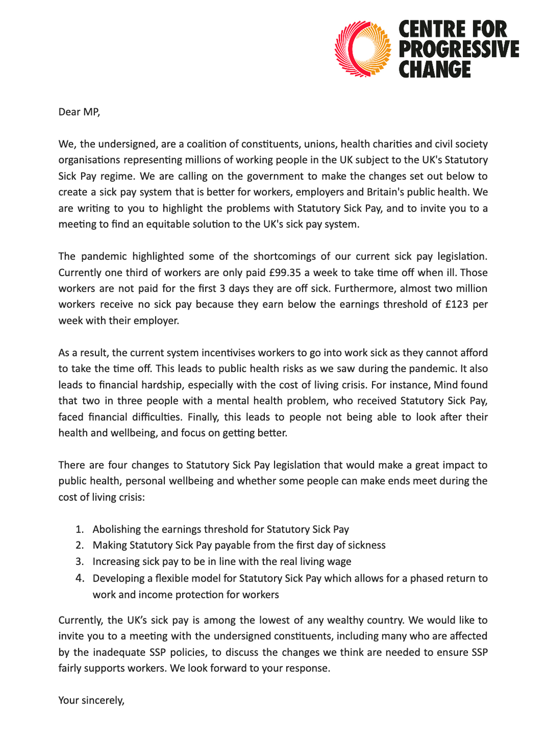 Invite your MP to a meeting to discuss changes to statutory sick pay