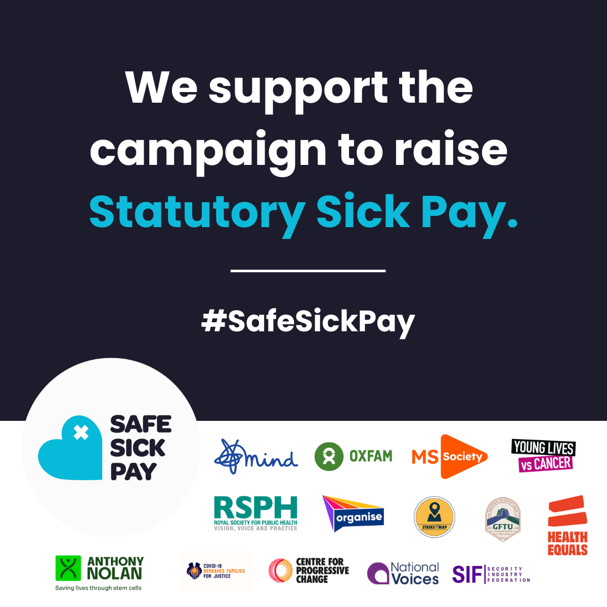 We work with partners and allies including Covid Bereaved Families, Citizens Advice, Organise, the Royal Society of Public Health and the Work Foundation.